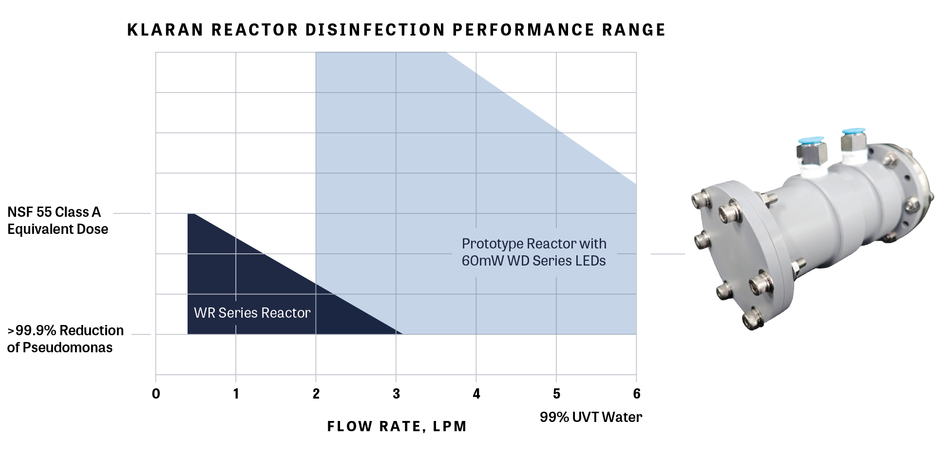 The new reactor, which is expected to be ready for market in early 2020, incorporates a user-replaceable LED “engine” to address both the different market performance requirements and alternate business revenue models of the commercial water industry. Similar to Klaran’s other WD series devices, the new LED is priced under 25 cents per mW. “The introduction of our new 60mW LED marks another milestone in proving that UVC LEDs can affordably deliver the performance needs of the commercial and consumer point-of-use markets,” said Eoin Connolly, VP for Klaran.